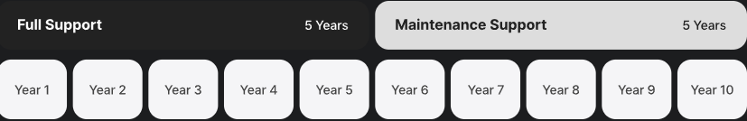 - 총 10년의 라이프사이클을 제공하며, 일반 지원 5년 + 연장 지원 5년의 형태로 운영됩니다.